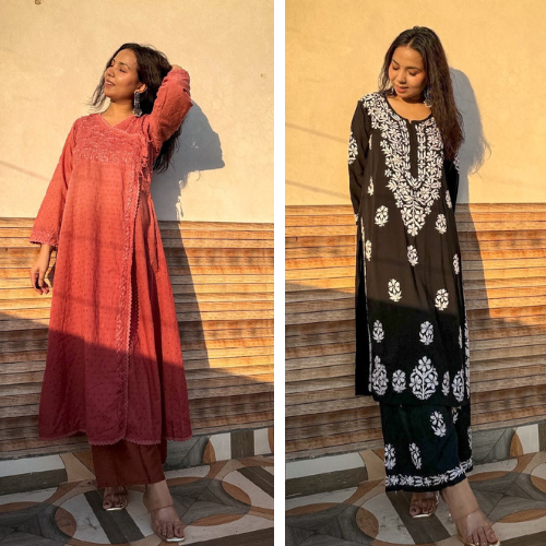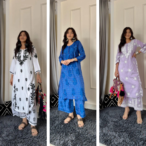 Iddat Muqaish Work Fine Handwork Lucknowi Kurta Plazo 2pcSet